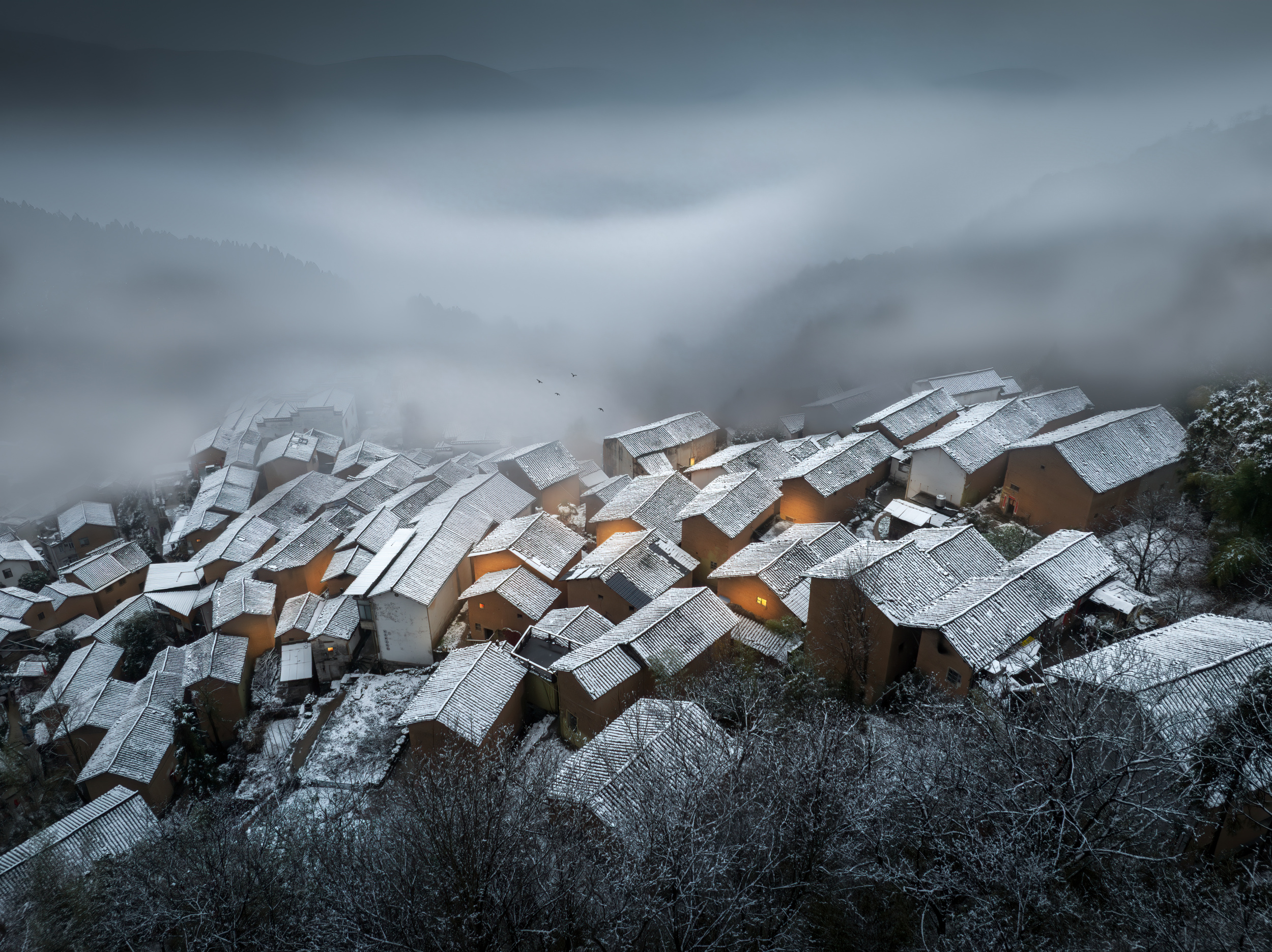 ‘Snow at night and ancient villages